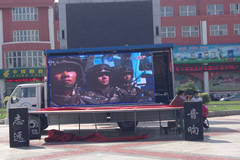 北镇广场大屏幕舞台车一块P10全彩十月一阅兵播放,由客户提出方案,实现了舞台广告车的设计。